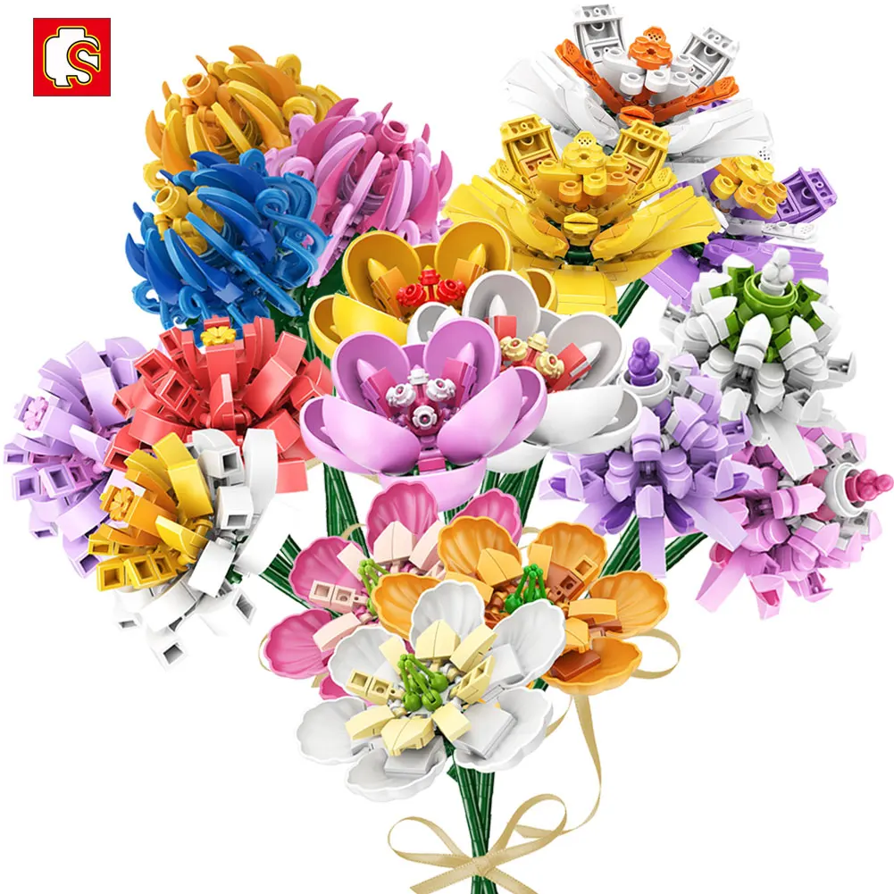 Sembo Creative Ideas Romantic Bouquet Flower Building Blocks Moc Garden Plant Assembly Bricks For Girls Friends Birthday Gift Blocks Aliexpress