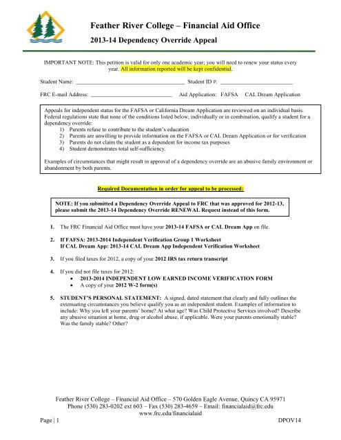 Dependency Override Appeal Feather River College